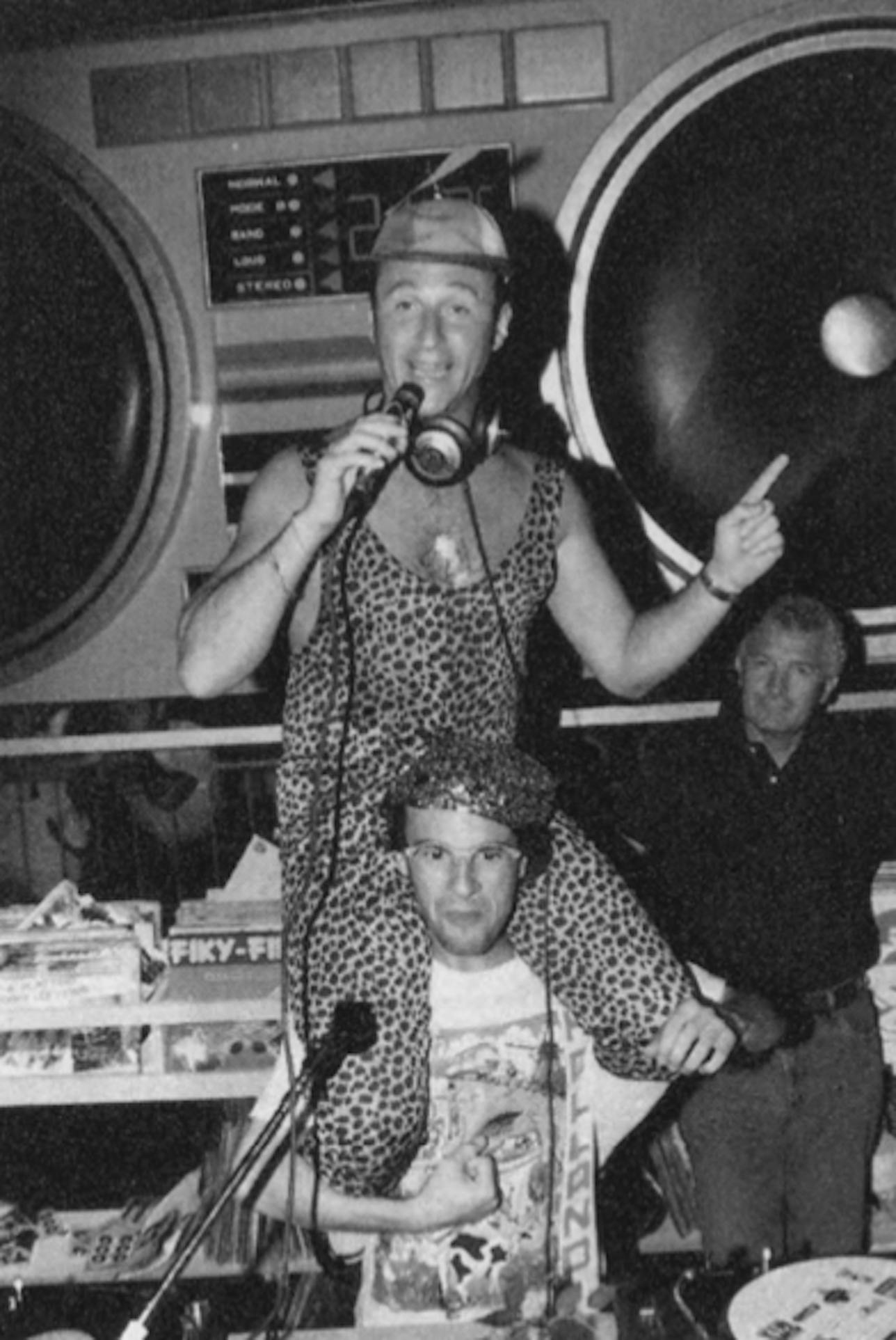 Questa immagine la dice lunga sulla trasformazione che il dj ha avuto negli ultimi anni: non più solo selezionatore di musica ma vero artista, protagonista e animatore delle discoteche.