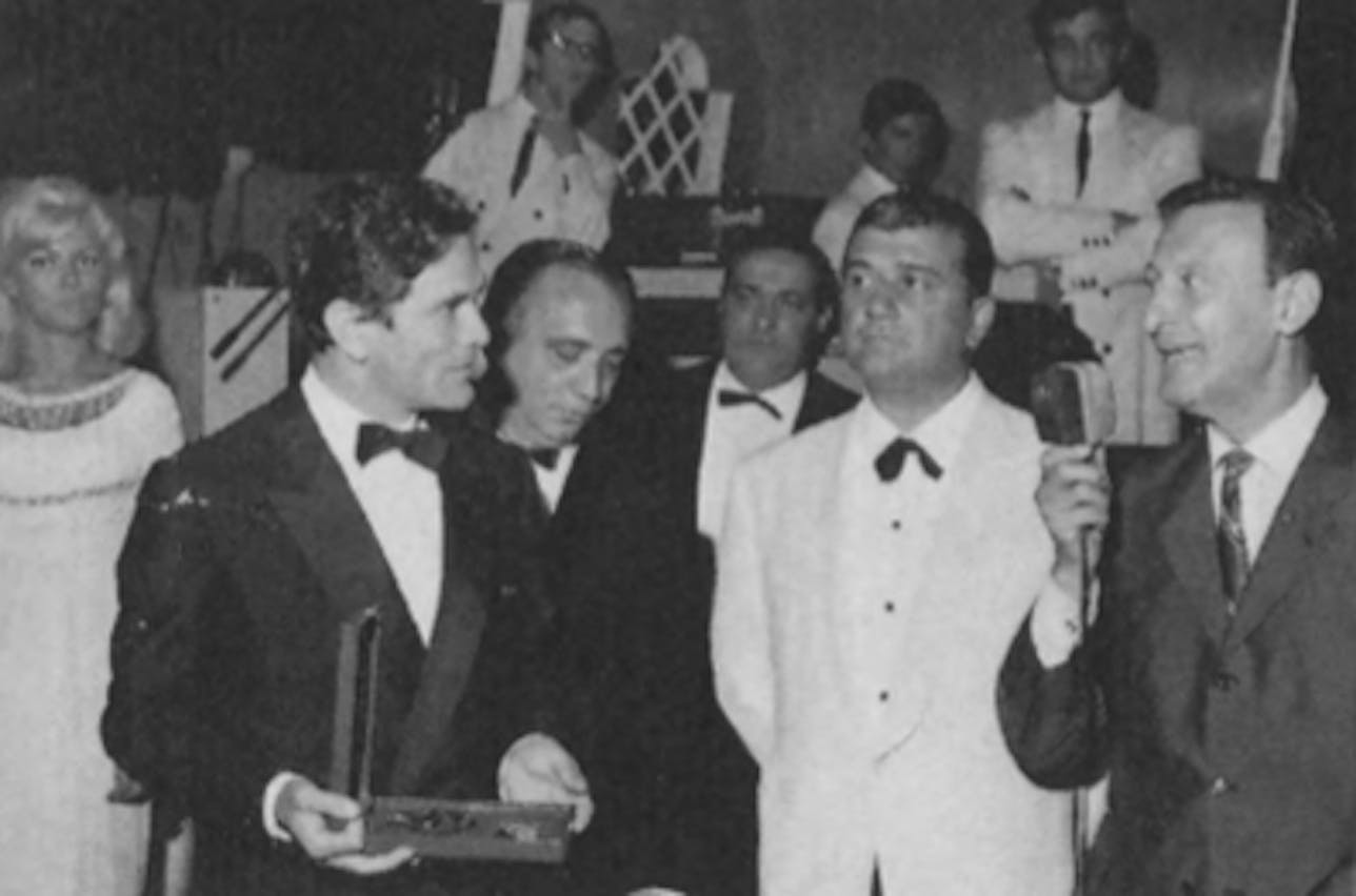 Pier Paolo Pasolini riceve al Savioli il premio quale miglior regista italiano per il film "Uccellacci e uccellini".