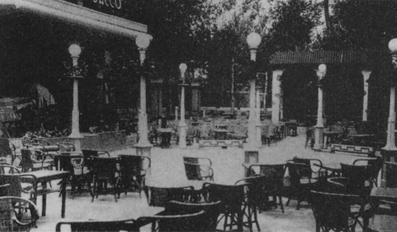 1929: la prima pista da ballo del Savioli, immerso fra i pini e con I'attrazione di fascinose "girls" ungheresi.